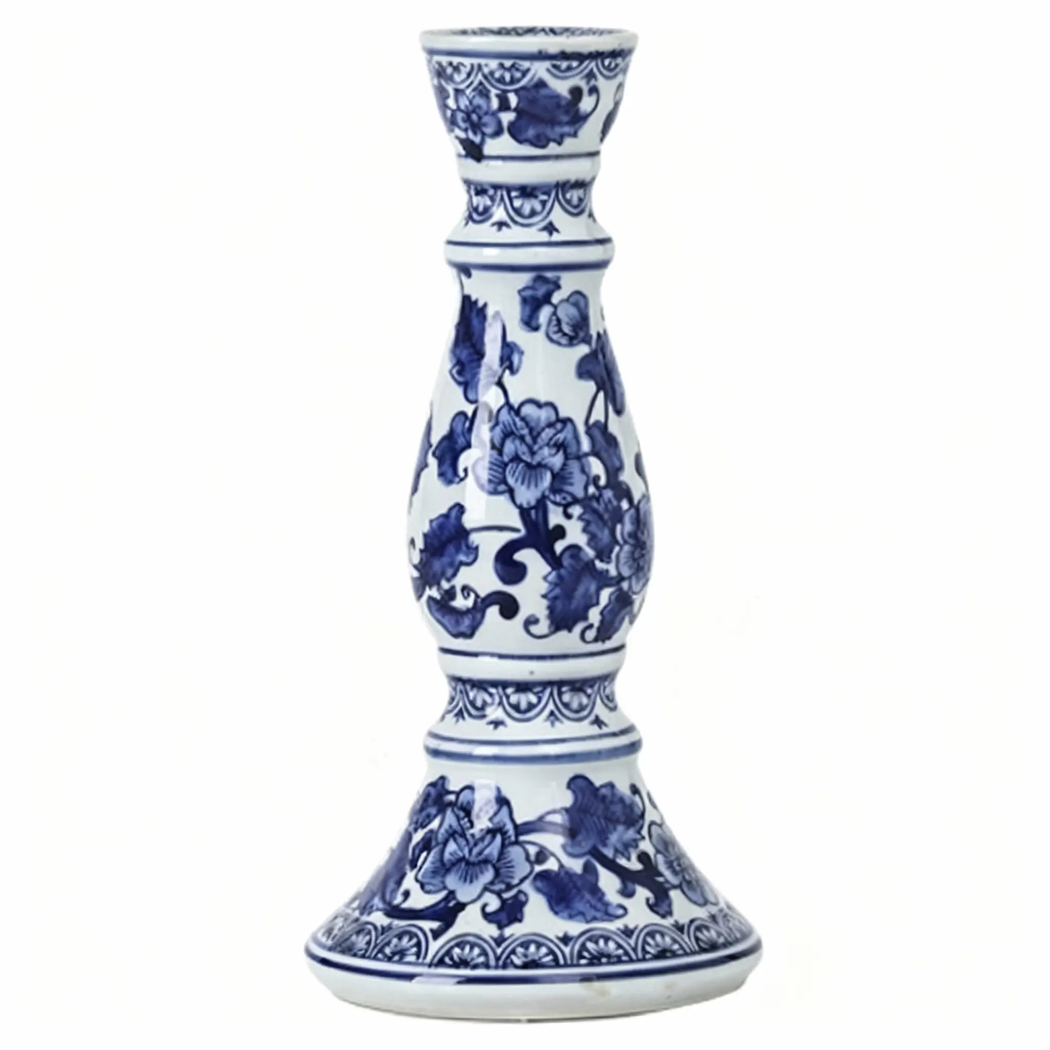 This exquisite Chinese blue - and - white porcelain candlestick seamlessly merges functionality with artistic allure. Crafted via time - honored ceramic techniques, it features elegant contours and intricate blue floral motifs on a white base, embodying the timeless beauty of Chinese porcelain art. Designed to securely hold candles, it acts as a practical lighting accessory, casting a warm, ambient glow—ideal for dinners, cozy evenings, or special events. Simultaneously, its sophisticated, traditional design serves as a stunning decorative accent, complementing various interiors (especially Asian - inspired or classic - themed spaces) and infusing living rooms, studies, or dining areas with cultural charm. Moreover, it makes a thoughtful gift for art lovers or home decor enthusiasts, as it balances utility (for candle - based ambiance) and aesthetic appeal, offering both a practical lighting solution and a piece of handcrafted artistry to elevate any space.